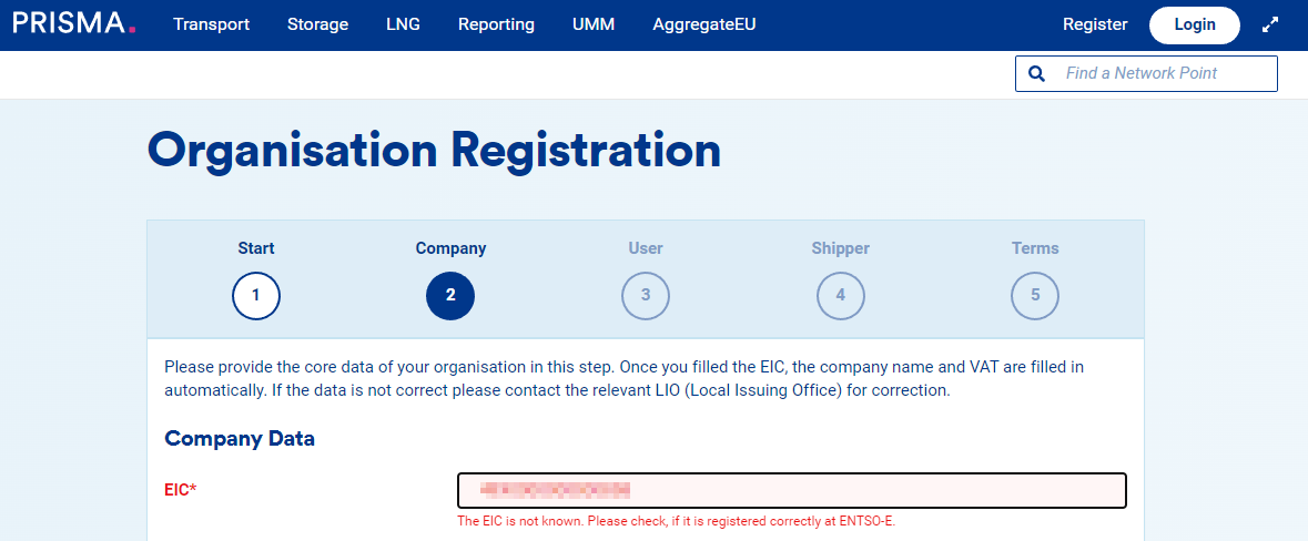 For your registration as a shipper on the PRISMA platform, you need to have a valid EIC Code.