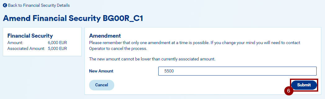 If your company has an approved bank guarantee type of financial security in place with an operator, you have the possibility to amend it.