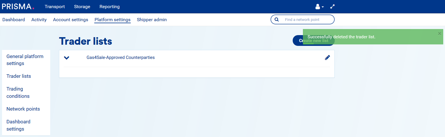6. A green box will appear and confirm that the trader list has been successfully deleted.