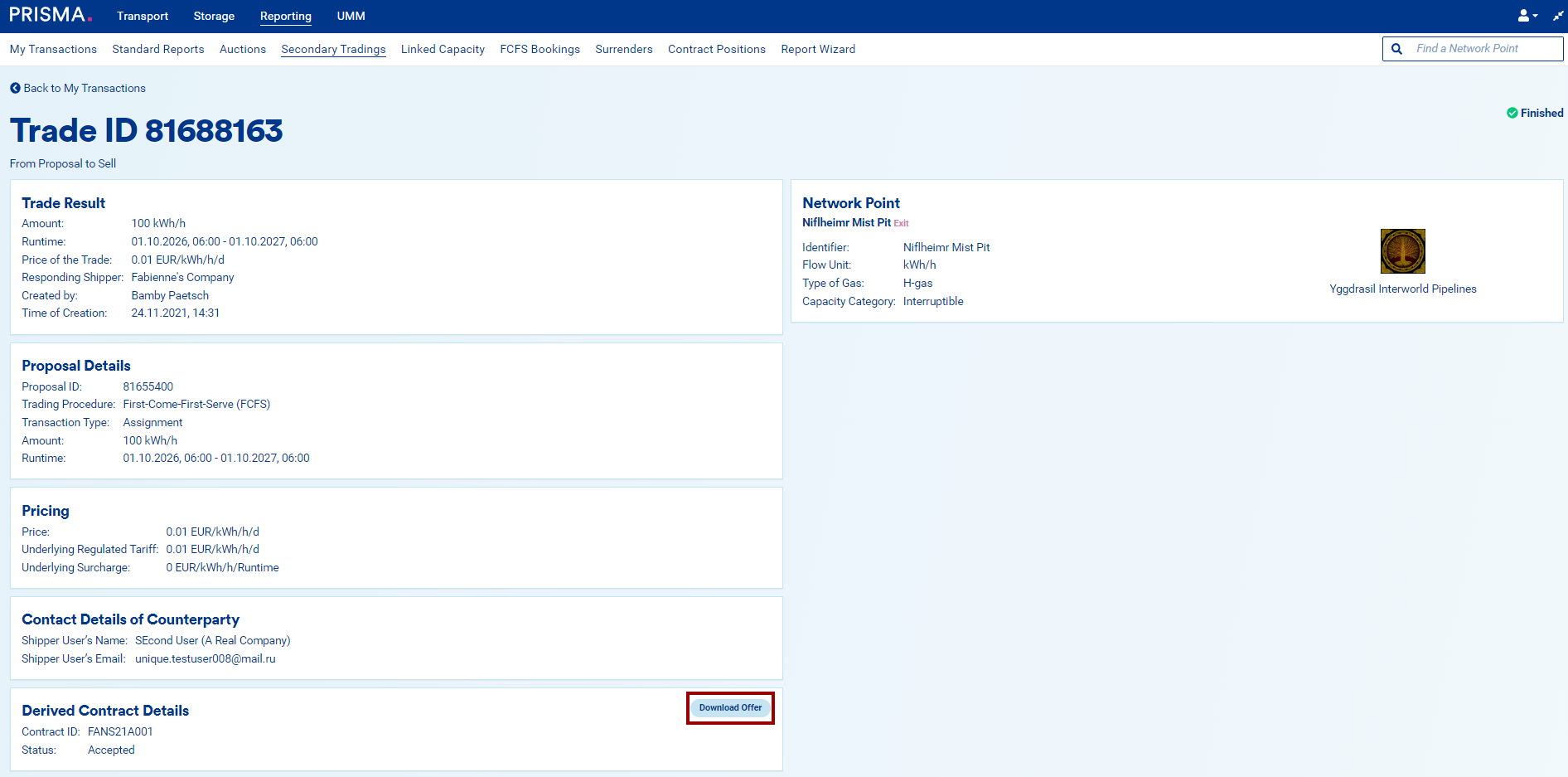 From 2022, PRISMA will offer a Contract Management service, to which any TSO can subscribe. If a TSO to which you have an assignment subscribes to this functionality, you will be able to receive and download your contracts directly on the platform.