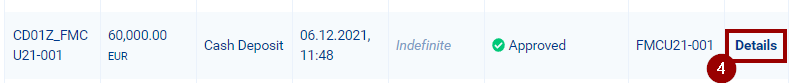 4. Scroll down to the overview of the financial securities, find the approved cash deposit you would like to release and click on its details: