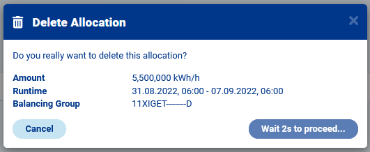 Note: Please keep in mind that you will be able to delete an allocation to balancing groups up to three hours before the runtime start of the allocated capacity.