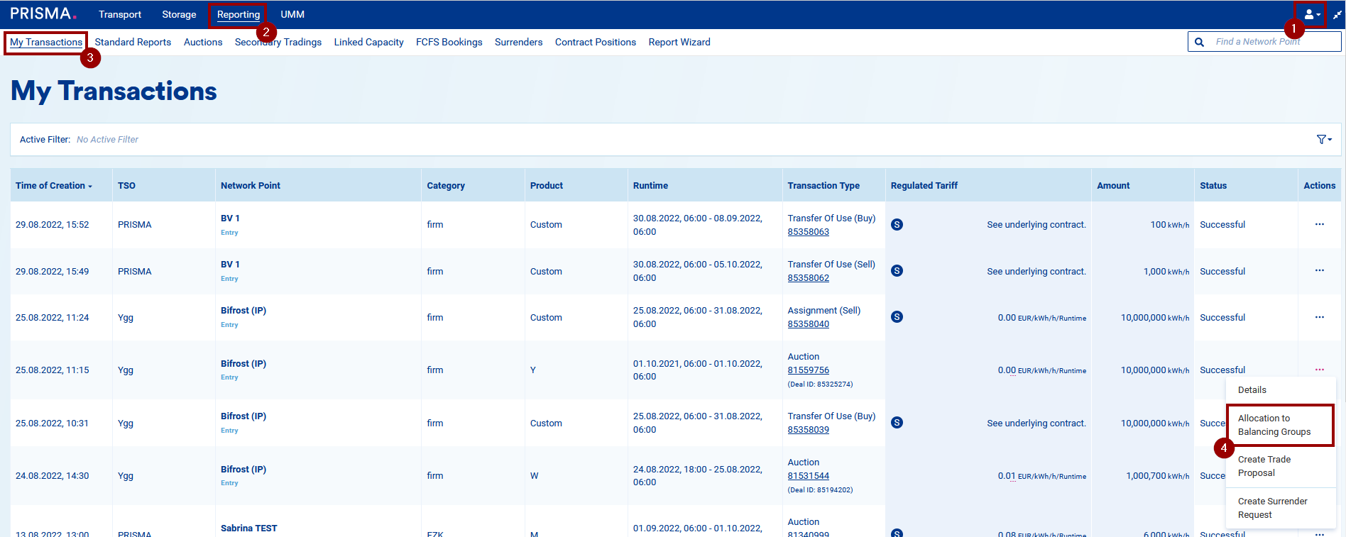 If an operator to which you're assigned subscribes to our Capacity Management module, you can now see, add, change and delete the capacity allocations for your balancing groups directly on PRISMA. In general, these tasks can be accomplished in the Reporting section of the platform.
