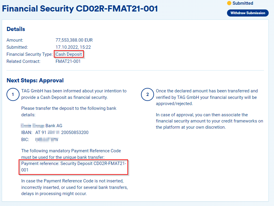 9. Your financial security is now in status "Submitted" and will need to be approved by the operator.