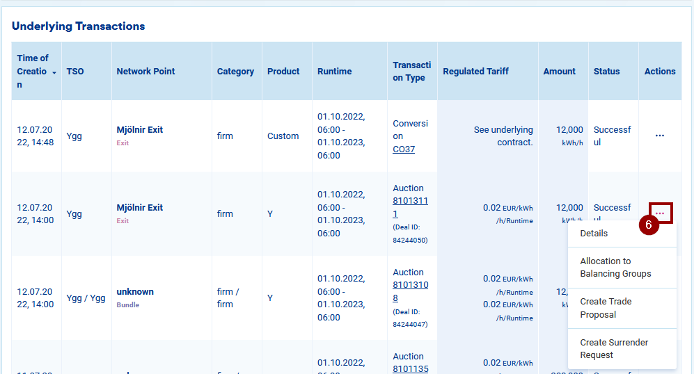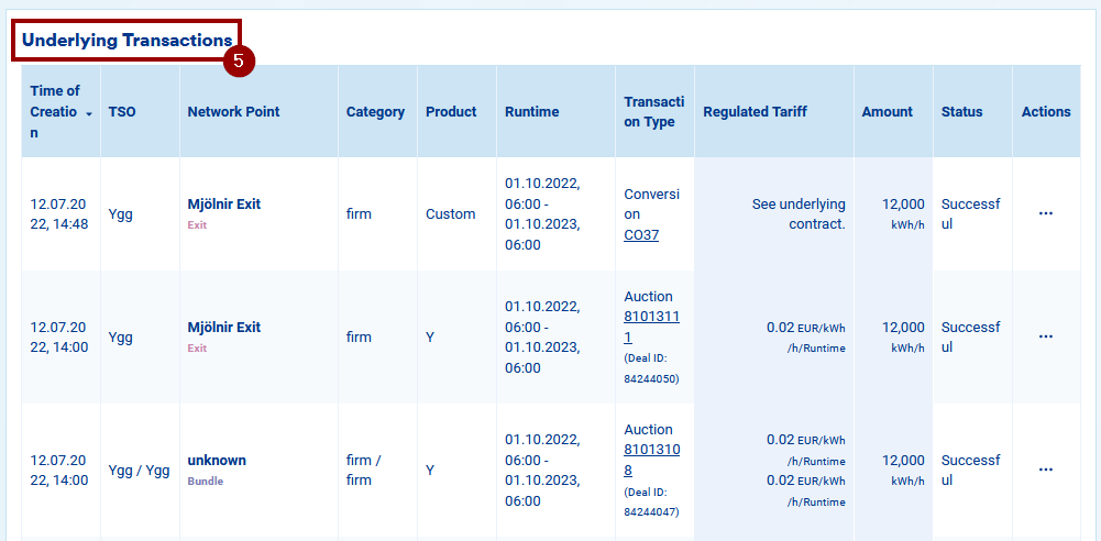 5. The "Underlying Transactions" table will give you a summary of the transactions through which the capacity has been acquired.