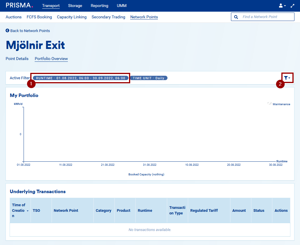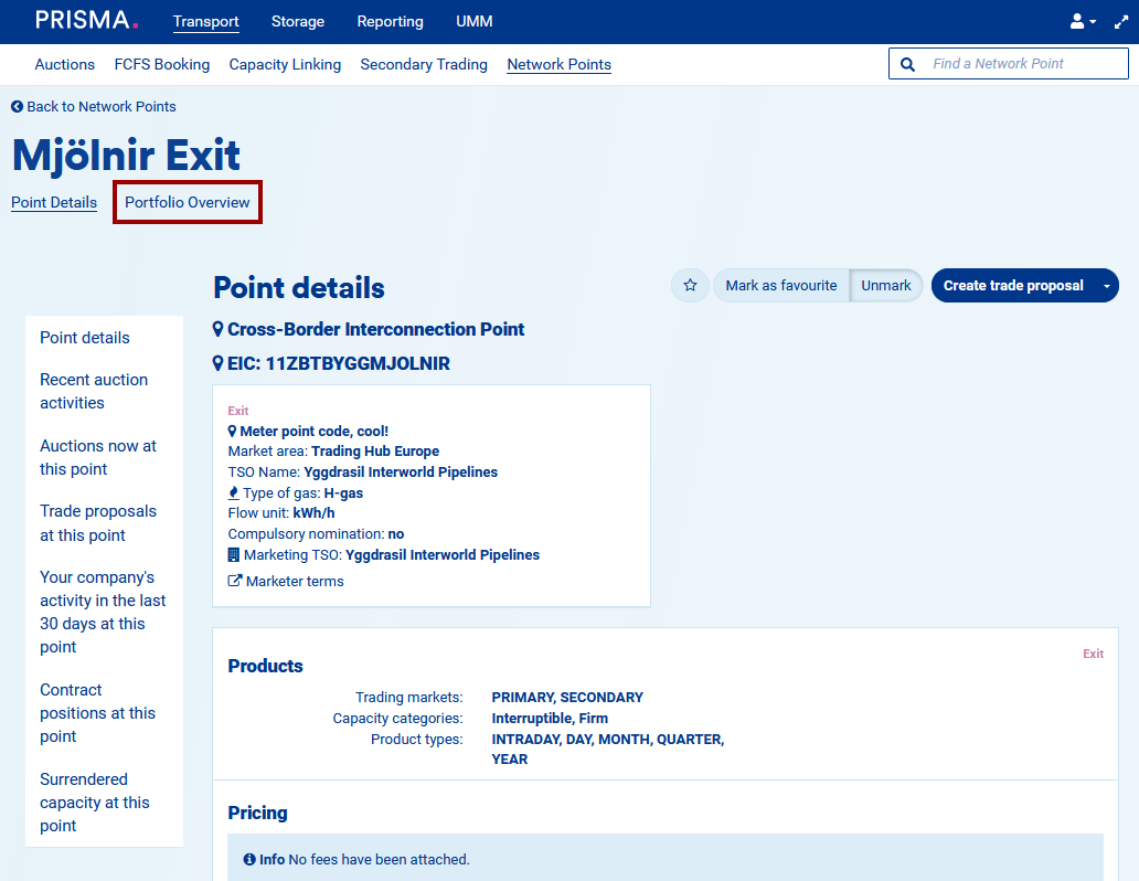 Note: you will be able to see your portfolio overview at any network points. However, you will be able to create surrender and conversion requests as well allocate the capacity to balancing groups only at the points of operators subscribing to the PRISMA Capacity Management service.