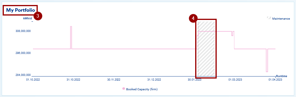 4. If there is any maintenance during the runtime covered by your portfolio, you will see a grey area.