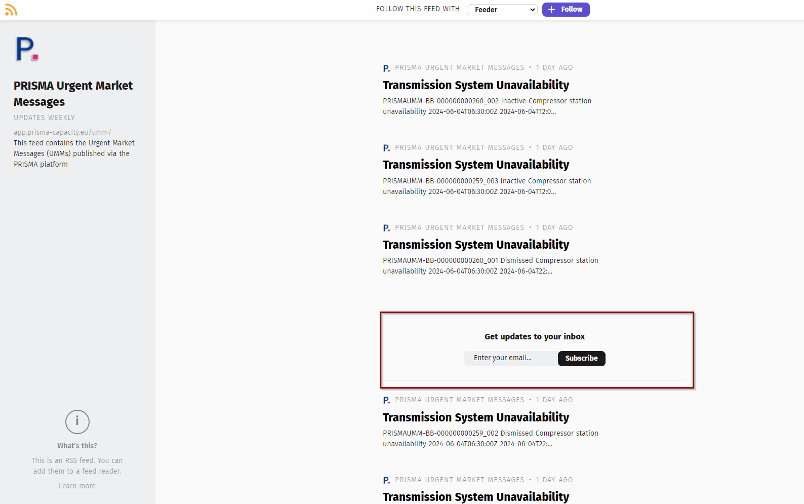 If you want to be up-to-speed with the UMMs published on our Inside Information Platform, you have the option to subscribe to our RSS Feed. This will give you the advantage of receiving the messages in a reader of your choice instead of reading them on the platform.