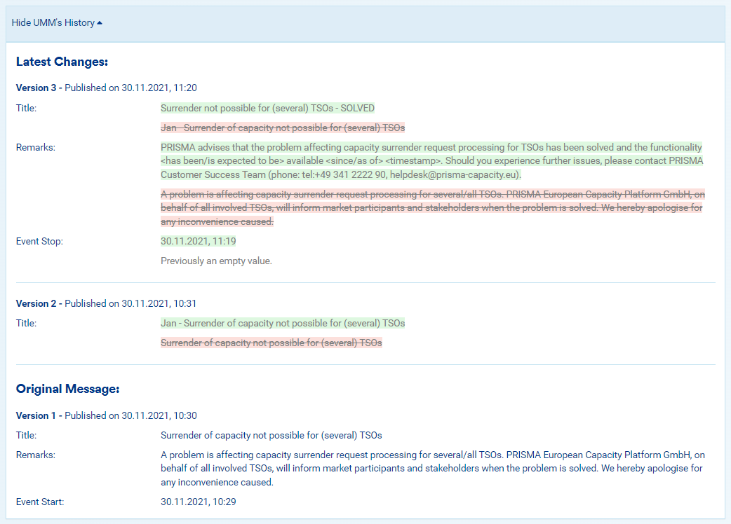 You can now view Urgent Market Messages (UMMs) from PRISMA or operators directly on the PRISMA platform.