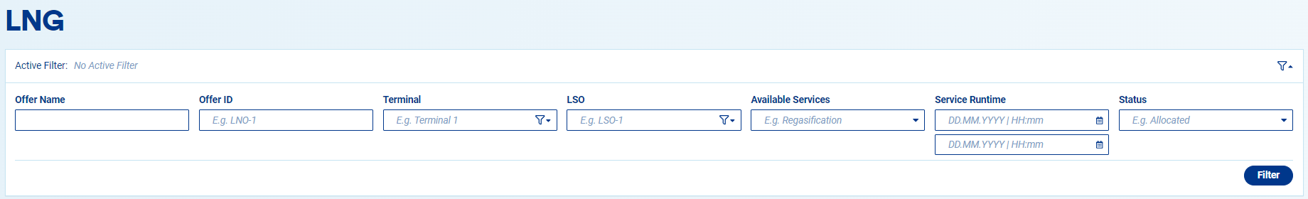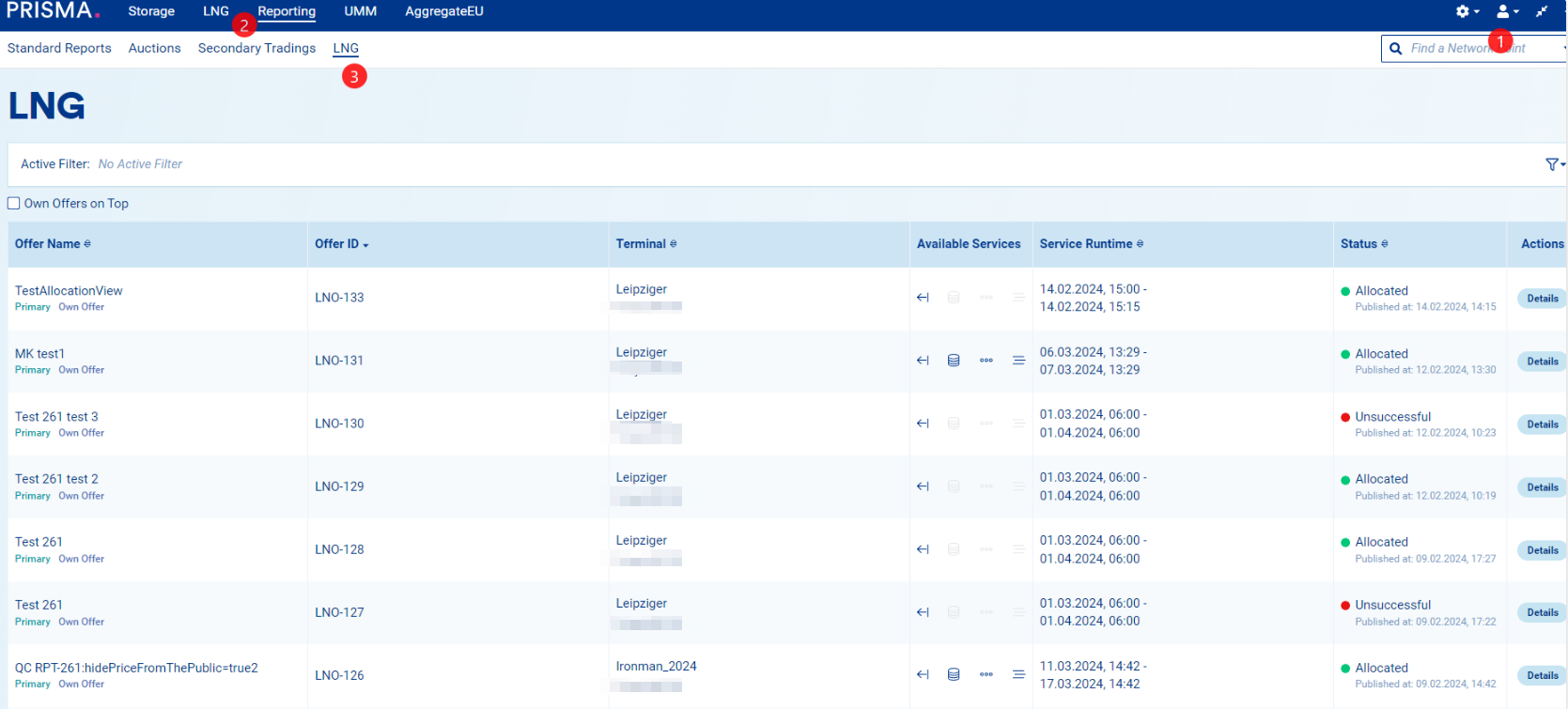 In the LNG Reporting section, you can find all LNG Offers which are in a final state: (1) finished, (2) cancelled, (3) unsuccessful, and (4) failed. They will be ordered from most to least recent.