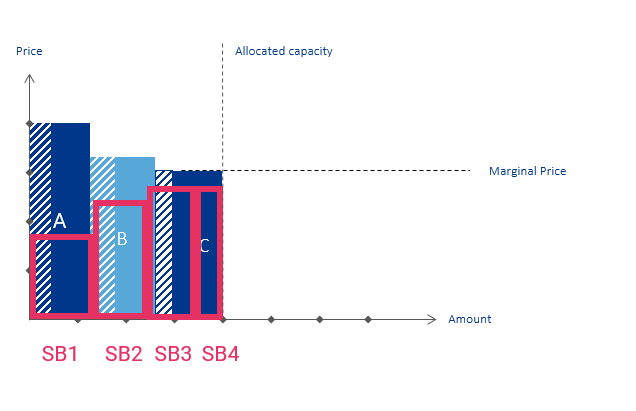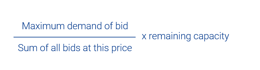 - Pro-rata Procedure in Buy Bids: When two shippers or more demand capacity for the same price and there's not enough leftover capacity to supply for their maximum demand, they receive capacity on the basis of a pro-rata allocation.