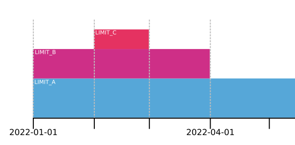 So, when you conclude a transaction on the platform, its value is divided and subtracted from the stacked limits following these timeslices. However, for every timeslice, the algorithm prioritizes deductions from credit limits that expire earlier before it spills over to the ones below. In brief, given the runtime of a specific transaction, the system goes through each timeslice and charges the proportionate amounts to the limits from earliest to latest expiration date.