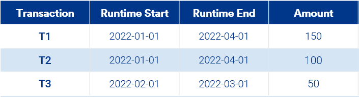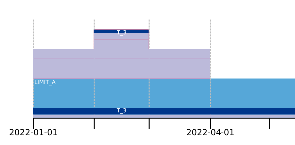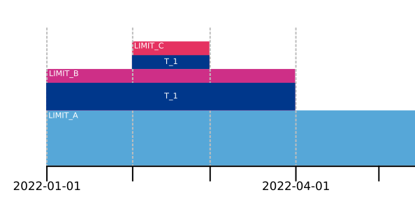 In our example, T1 will deduct 150 from Limit A, 150 from Limit B and 50 from Limit C (since it is active for 1/3 of the runtime of T1).