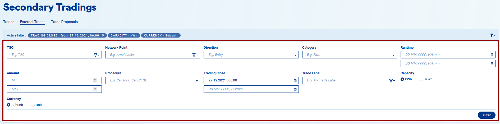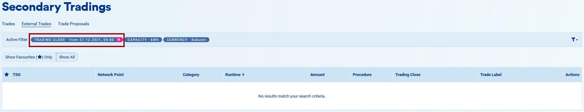 5. Alternatively, you can remove the default filter to be shown all the external trades which have been entered: