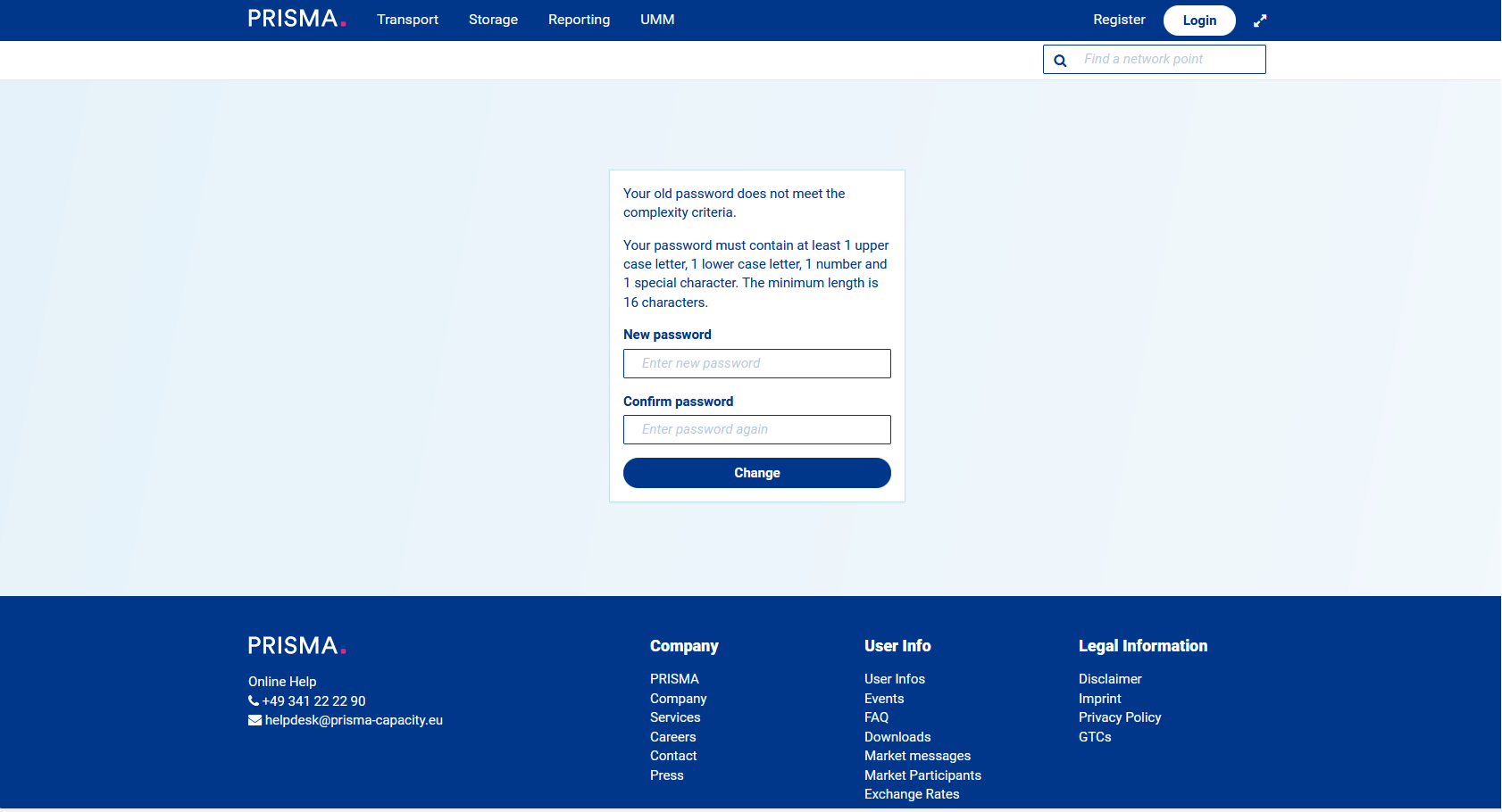 In the following step, you will be required to change your password. The new password needs to contain at least 16 digits.