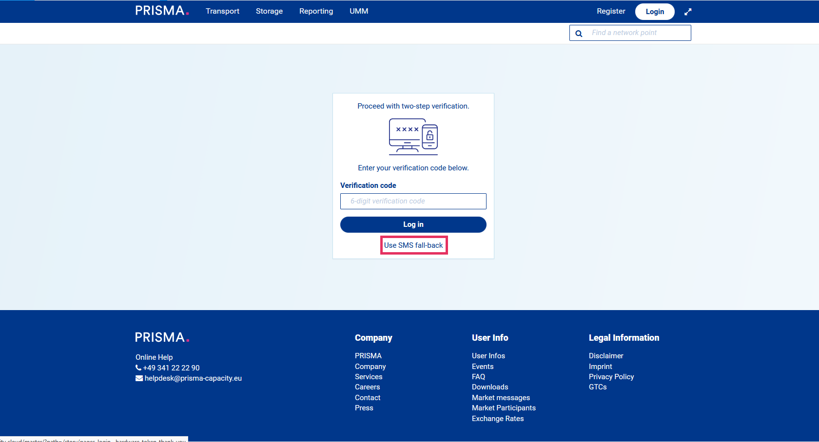 Instead of inserting the 'Verification code', click on 'Use SMS fall-back'.