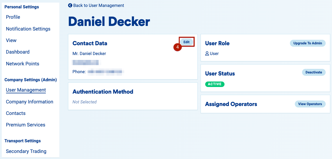 Note: This article describes the process of editing user details which will go live on 1st March 2023. Until then, you should edit the details of your company's users in accordance with How to edit the details of my shipper users?
