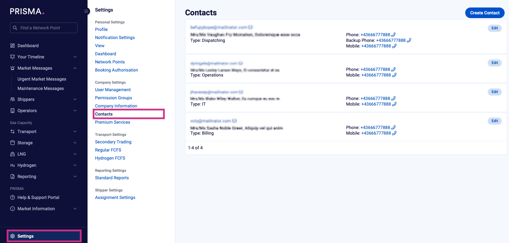 Note: for any changes concerning the "Dispatching (Central)" contact, please fill out Form 1 and send it to helpdesk@prisma-capacity.eu.