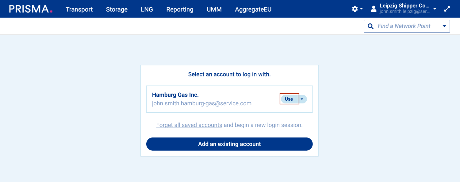 On PRISMA, you can add multiple user accounts to your browser. This feature enables you to log in with different accounts at once and easily switch between them. These accounts will remain active for a period of 24 hours without use, if you don't manually log out.