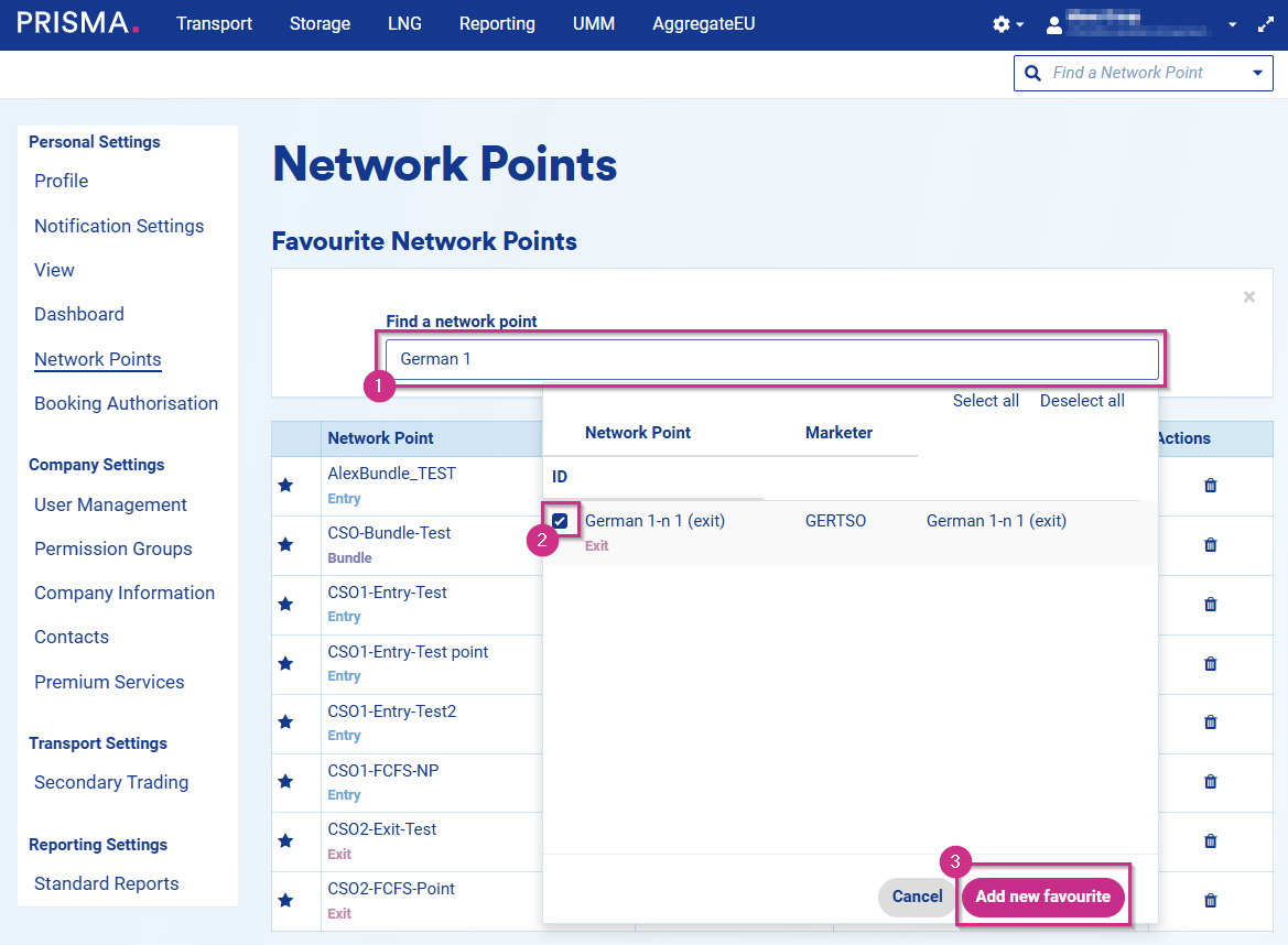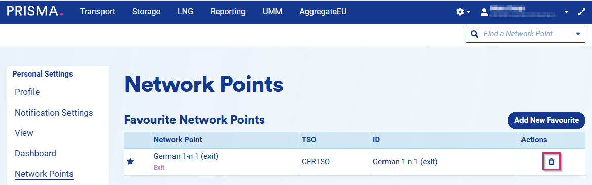 Remember that you can always delete a favourite network point from your favourite list by clicking on the bin symbol.