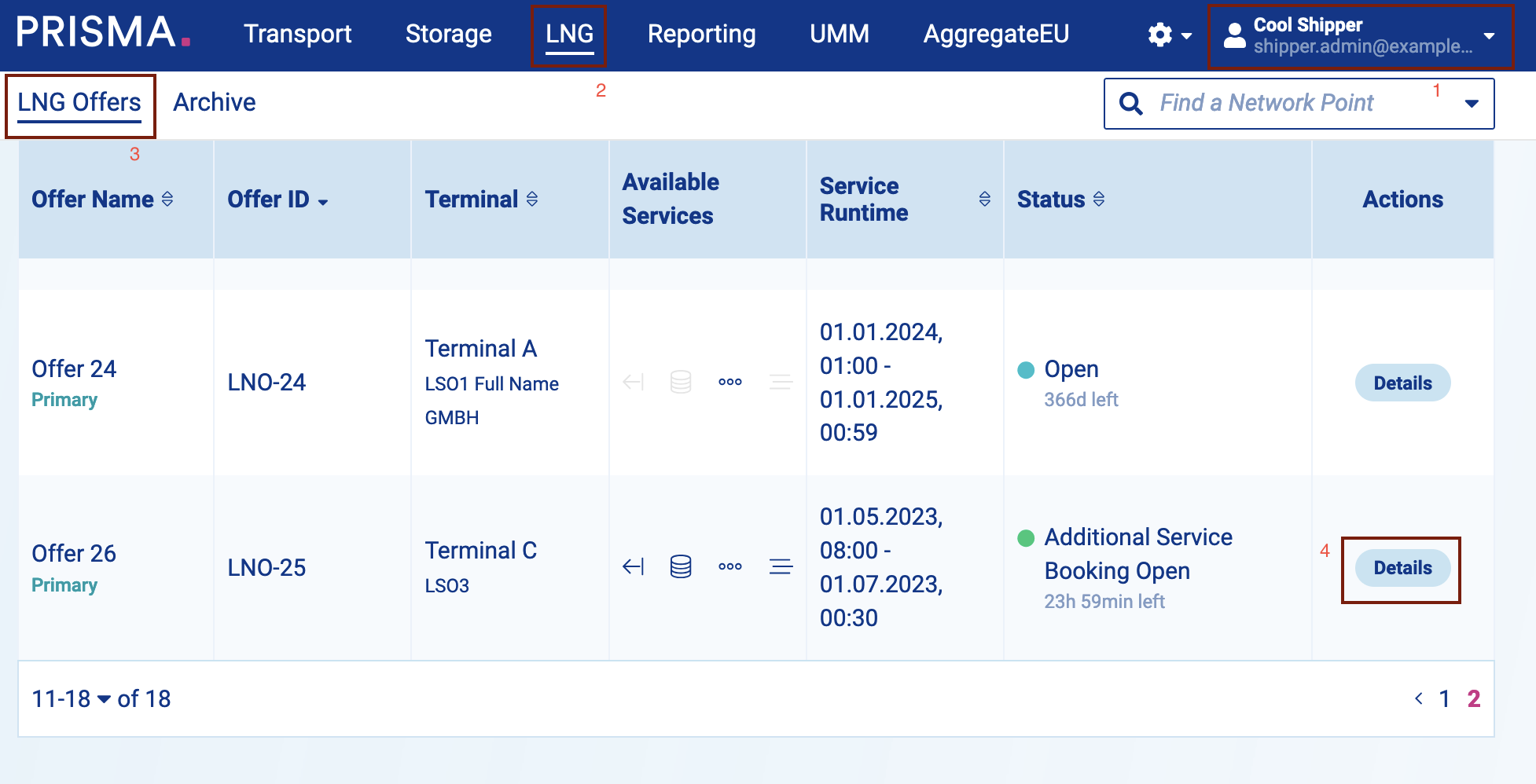 3. Then, Click on "LNG Offers" - this is the main page of the LNG section;