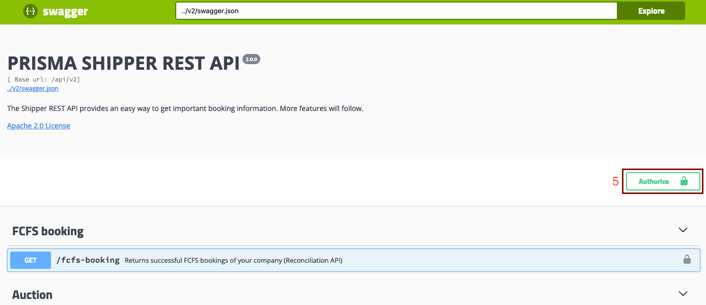 First, go to the Swagger page and click on "Authorize;"