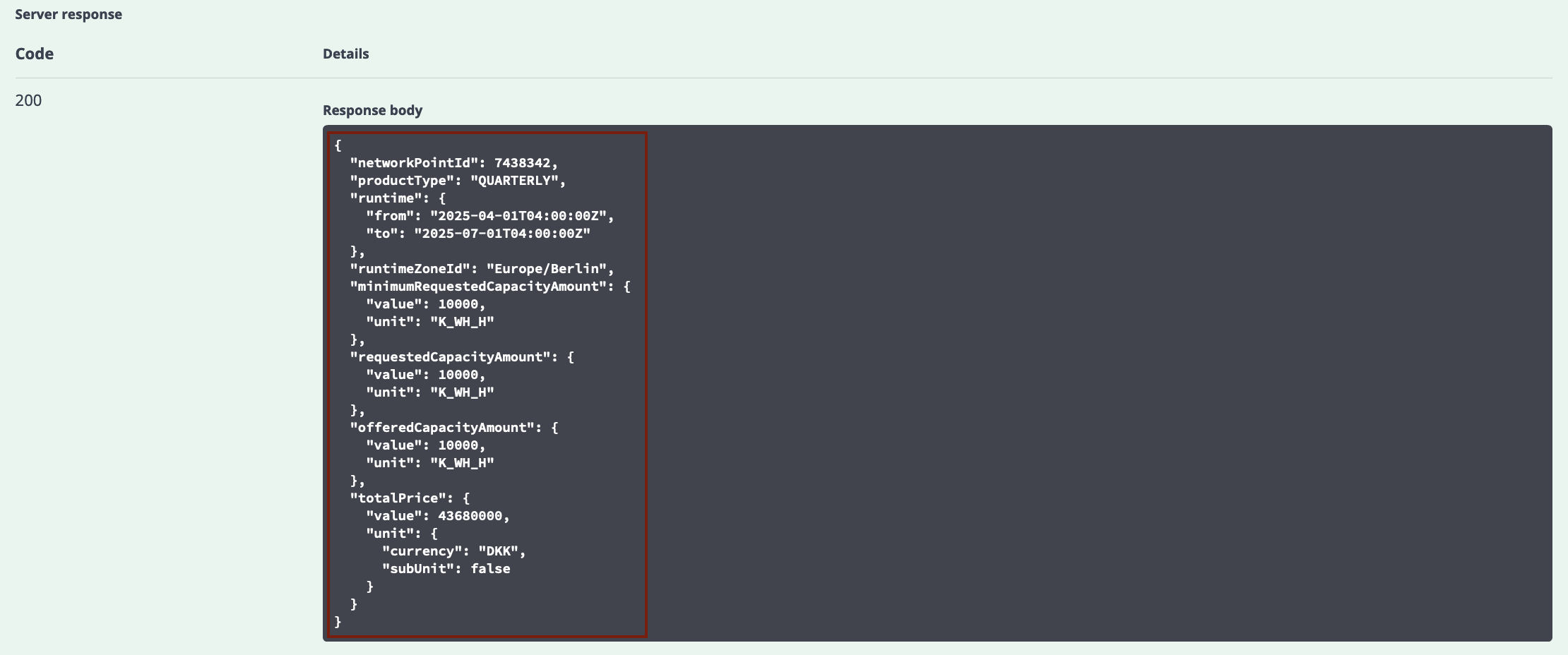 This message includes all the necessary details for the submission of a direct FCFS booking. Note that TTPC/Transmed offers do not include a total price. In such bookings, the total price will be determined later based on the assessment of the regulators.