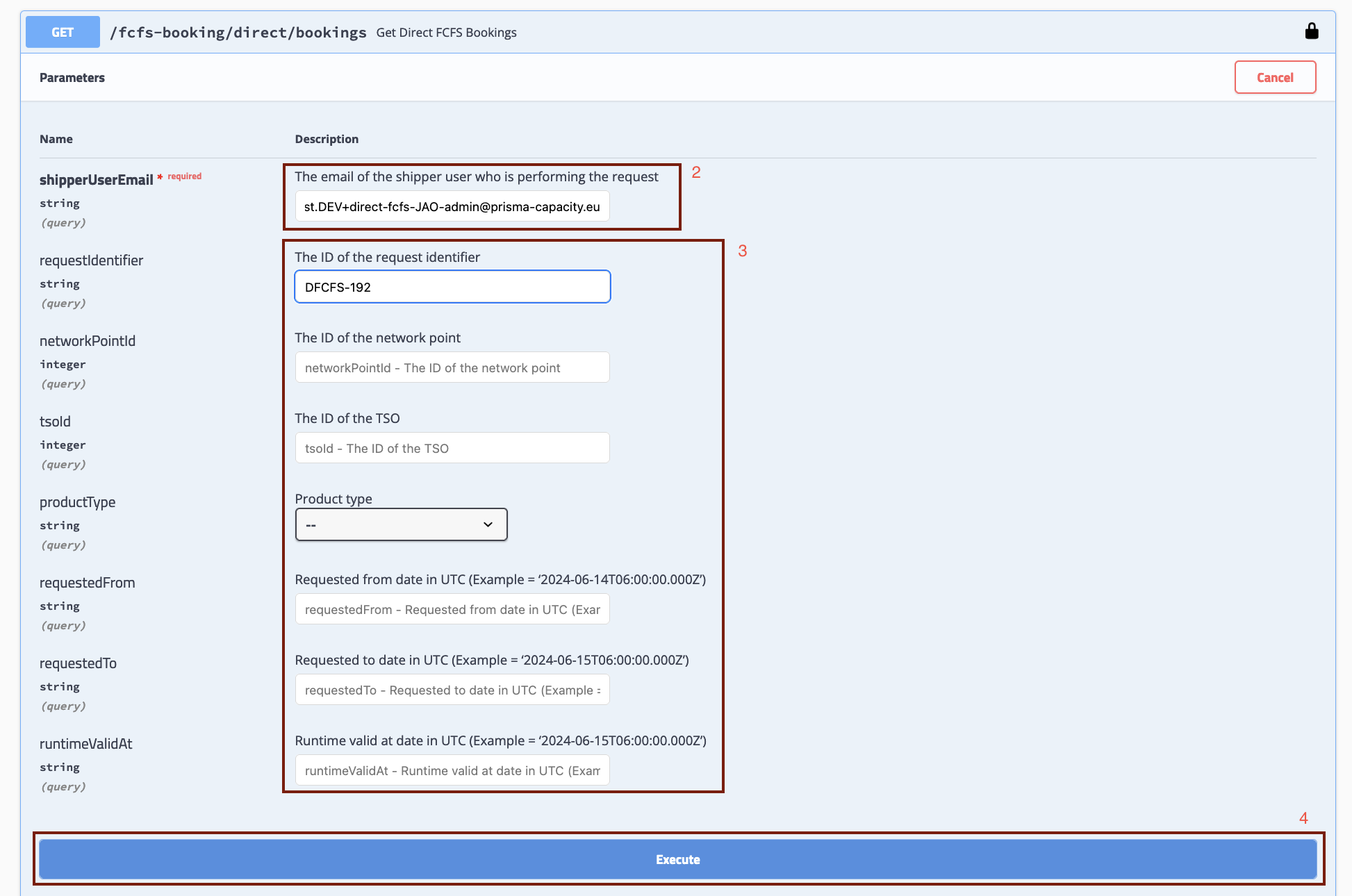 3. Then, enter one or more of the booking details in the fields below. If you're looking for a specific booking, the Request Identifier is the most straightforward method to retrieve it. If you're looking for bookings at a specific network point, then use the Network Point ID, and so forth;