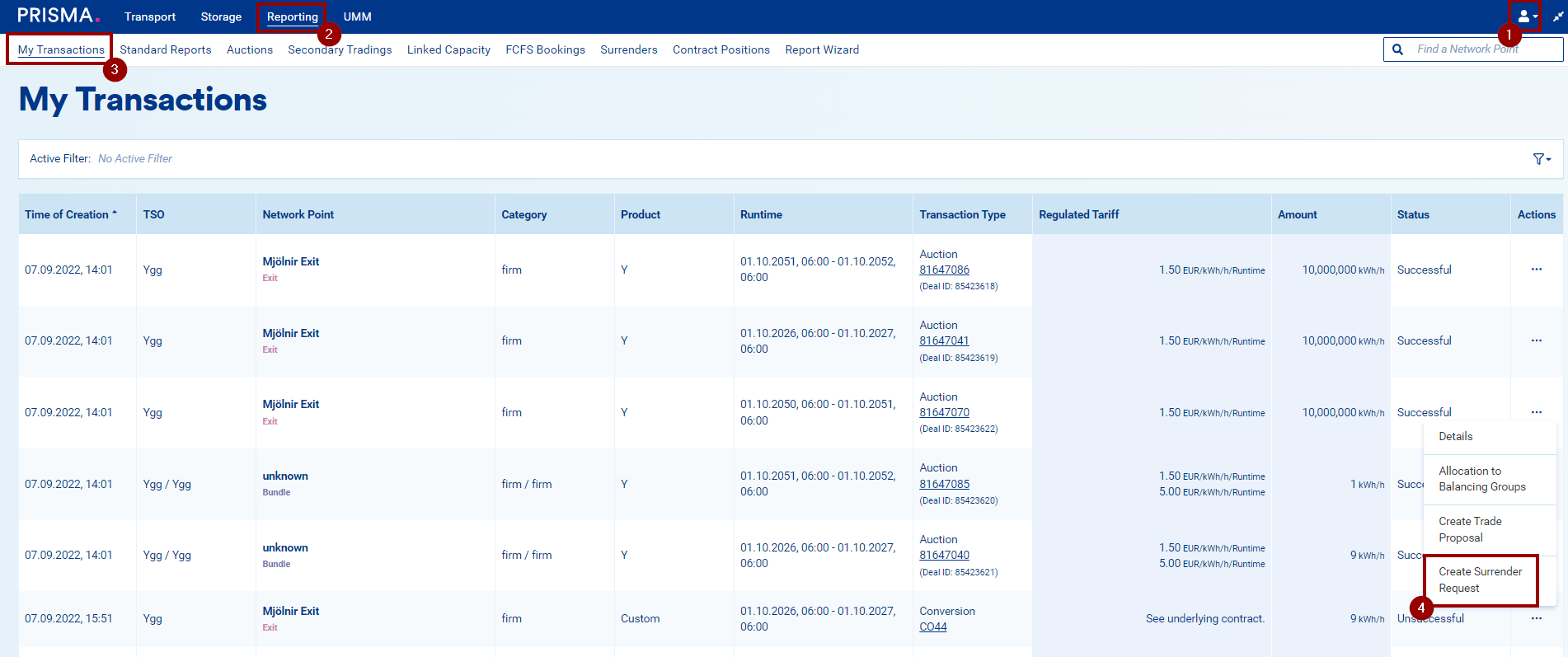 - "Successful", if the capacity could be remarketed