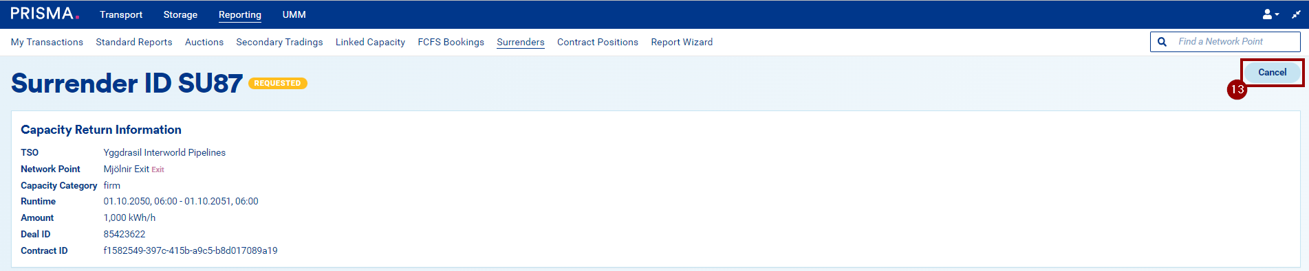 - "Unsuccessful", if the surrender request has been cancelled by you or if the capacity could not be remarketed