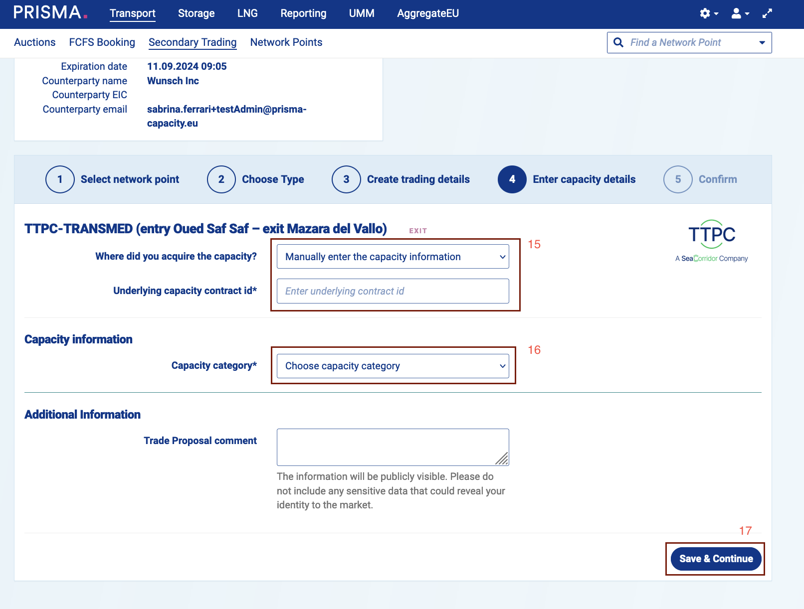 How to Create a Trade Proposal for TTPC/Transmed Capacity?