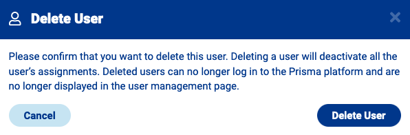 Note: the process of user deletion is immediate and irreversible.