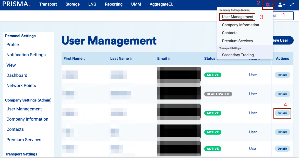 4. Then, in the row of the user you wish to deactivate, click on "Details."