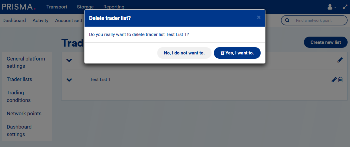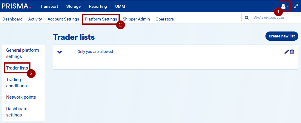 3. Click on "Trader lists" in the menu on the left side of the page: an initial overview of your trader lists will be displayed.