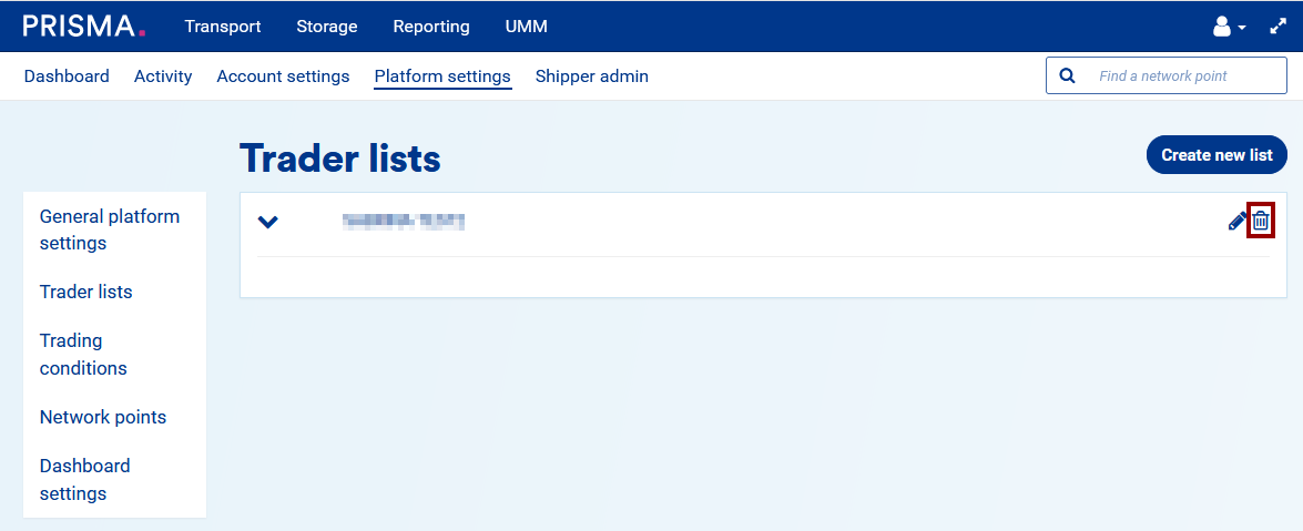 4. Click on the trashcan icon next to the pencil to delete the trader list.