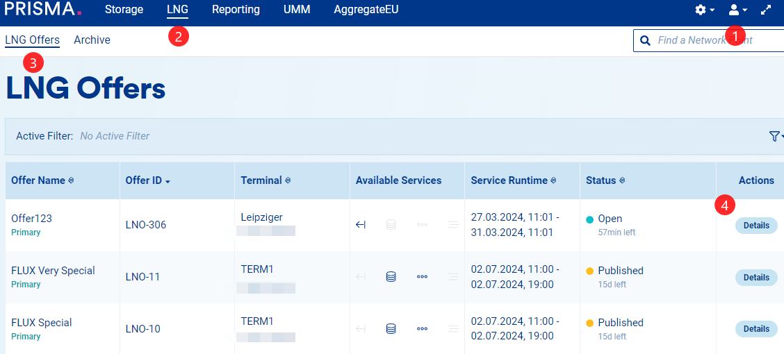3. Click on "LNG Offers;"