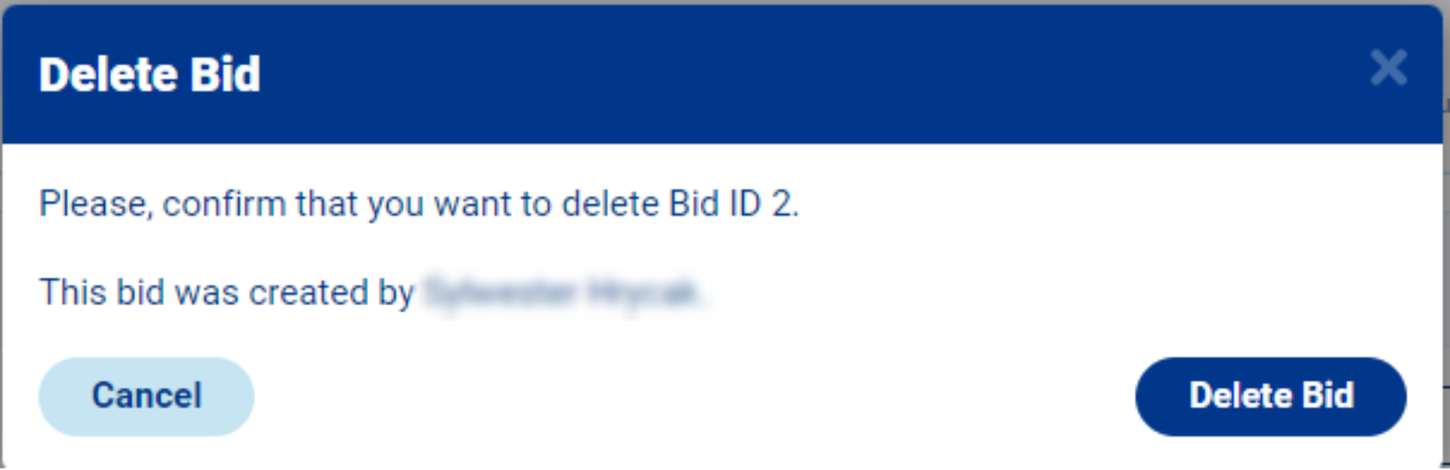 7. If, instead, you wish to delete a bid, click on the bin button and then confirm the action.