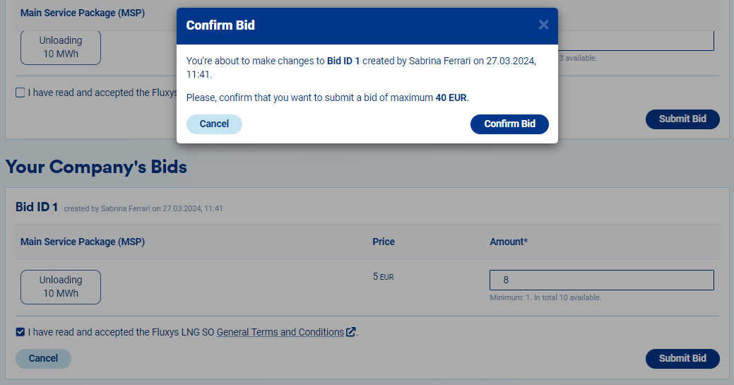 How to Edit or Delete a Bid in an LNG Offer?