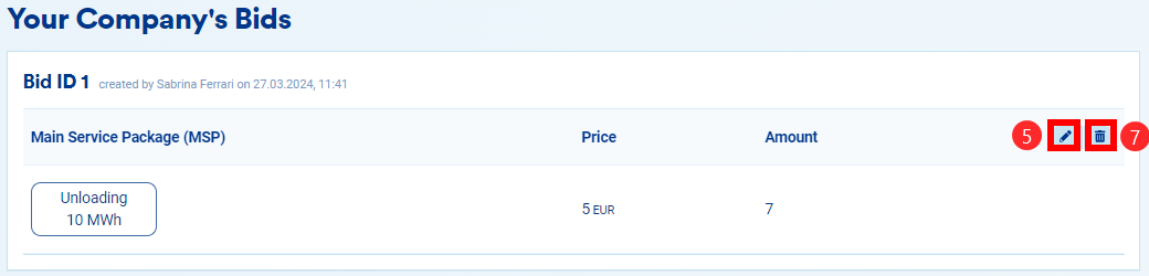 NOTE: Editing and deleting bids is only possible if the bidding window is still open.