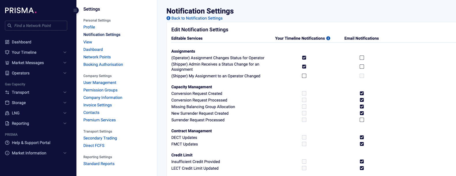 5. Adjust your notification preferences as required: