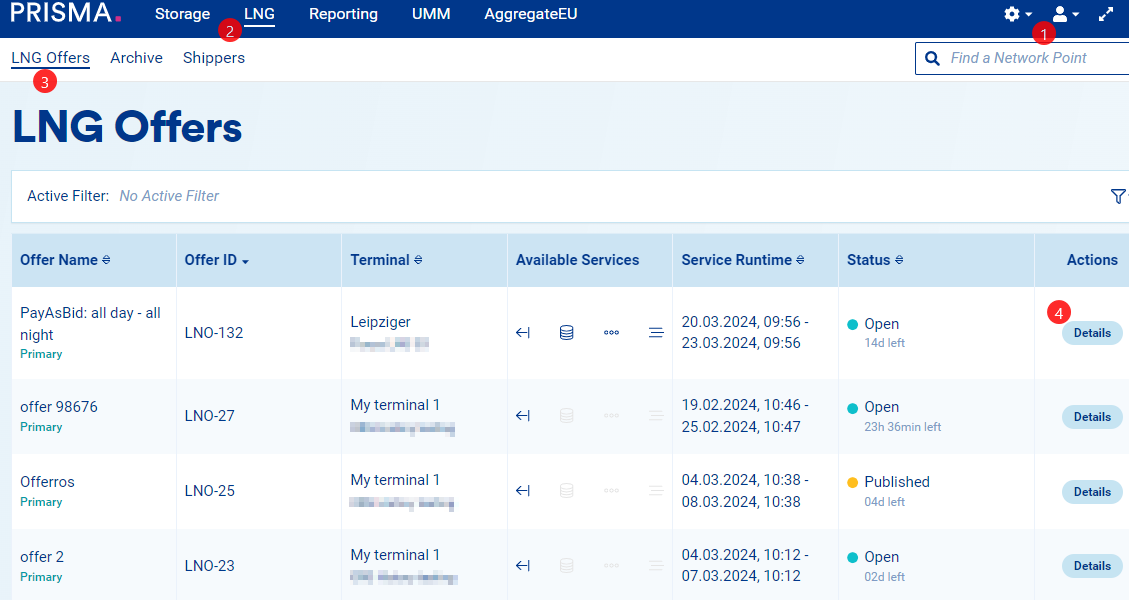 3. Click on LNG Offers;