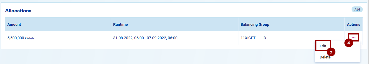 Note: Please keep in mind that you will be able to delete an allocation to balancing groups up to three hours before the runtime start of the allocated capacity.