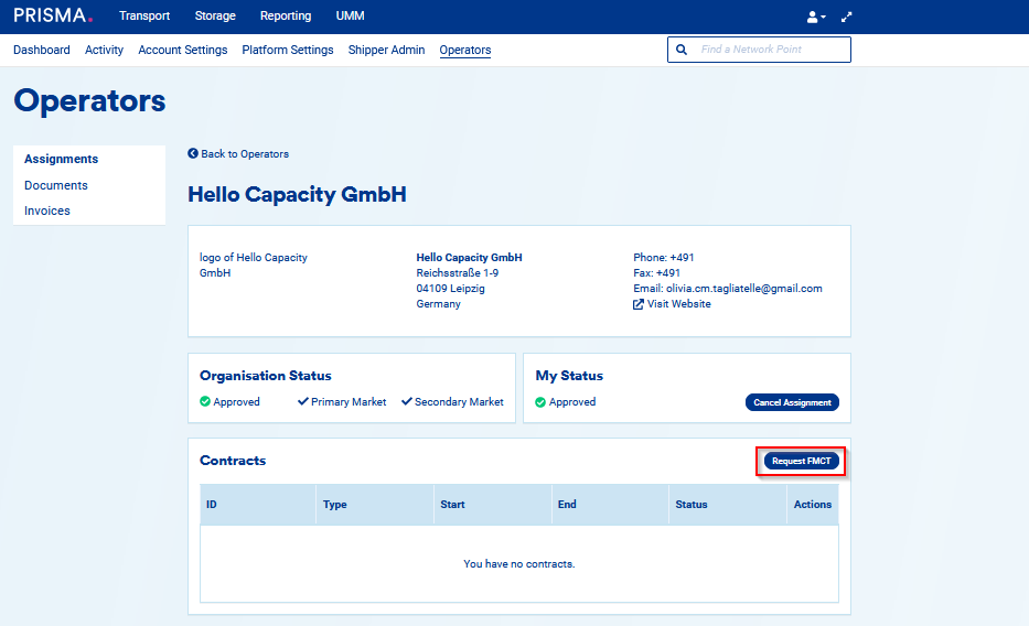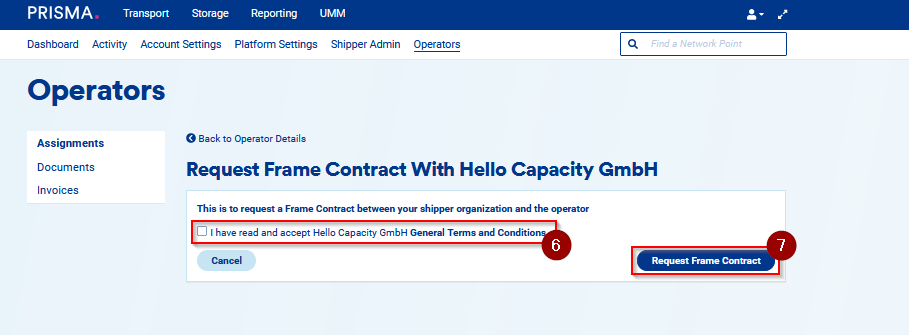 From 2022, PRISMA will offer a Contract Management Service to the transmission operators. If a TSO to which you have an assignment subscribes to this functionality, you will be able to request a frame contract with it directly on the platform.