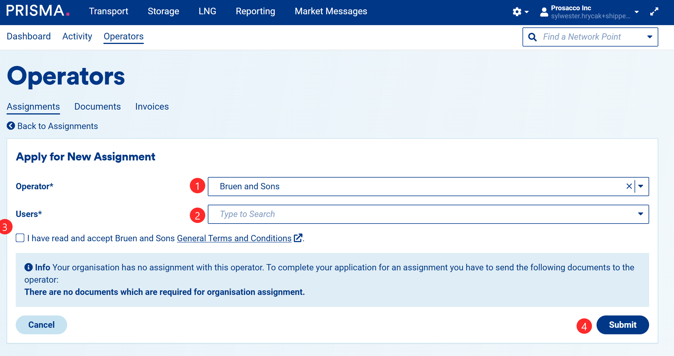 Note: Once the documents are ready and the assignment has been requested, please forward the documents to the respective operator and not to PRISMA. The operator will then review them and decide whether to approve or reject your request.