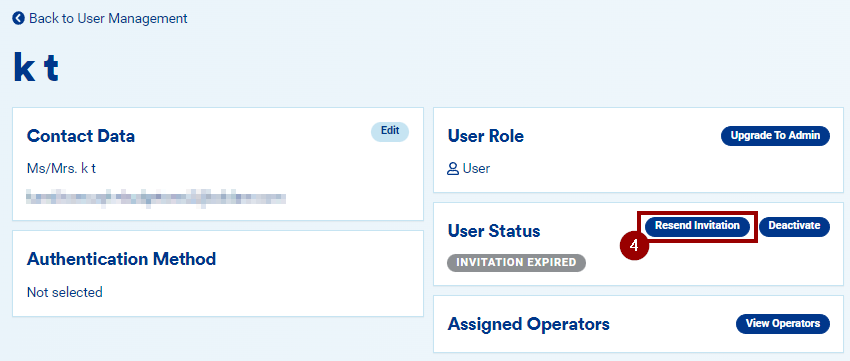 4. In the "User Status" tile, click on "Resend Invitation":