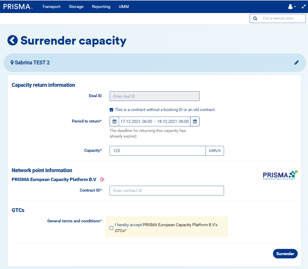 If you have excess capacity, you can surrender it to the TSO, so they may attempt to sell it again. At first, you surrender only the right to use such capacity. You remain, therefore, the owner of the surrendered product so long as the capacity is not resold by the TSO. If the capacity cannot be resold, you regain full control of the capacity.