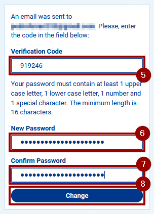 6. Additionally, you will have the possibility to enter a new password which fulfills all the criteria.