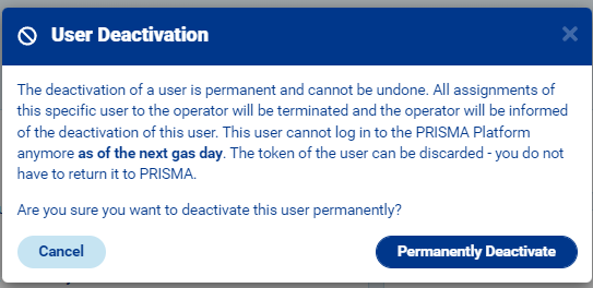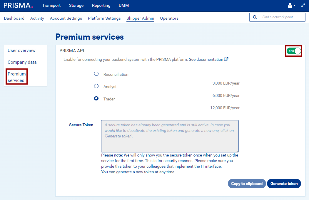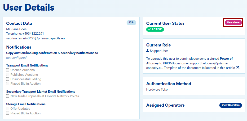 Each company should have at least one shipper administrator who has the power to manage users, assignments and company data on the PRISMA platform on behalf of the company.