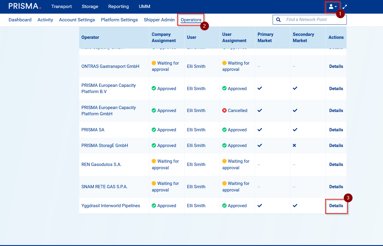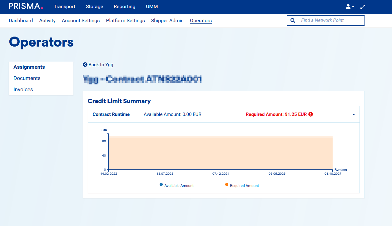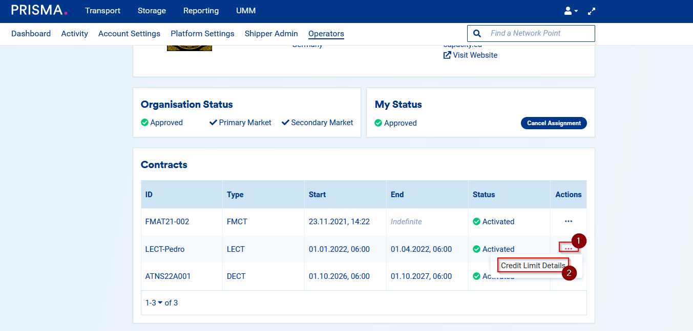 Once your legacy contracts (LECTs) are uploaded on PRISMA, you will be able to see them on the operator page. For each LECT, you can also view the credit limits related to it.