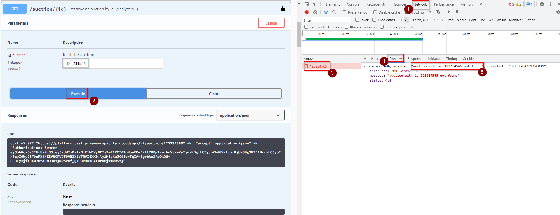 As it is described in the preview bar, the reason of the error here is the wrong auction ID.